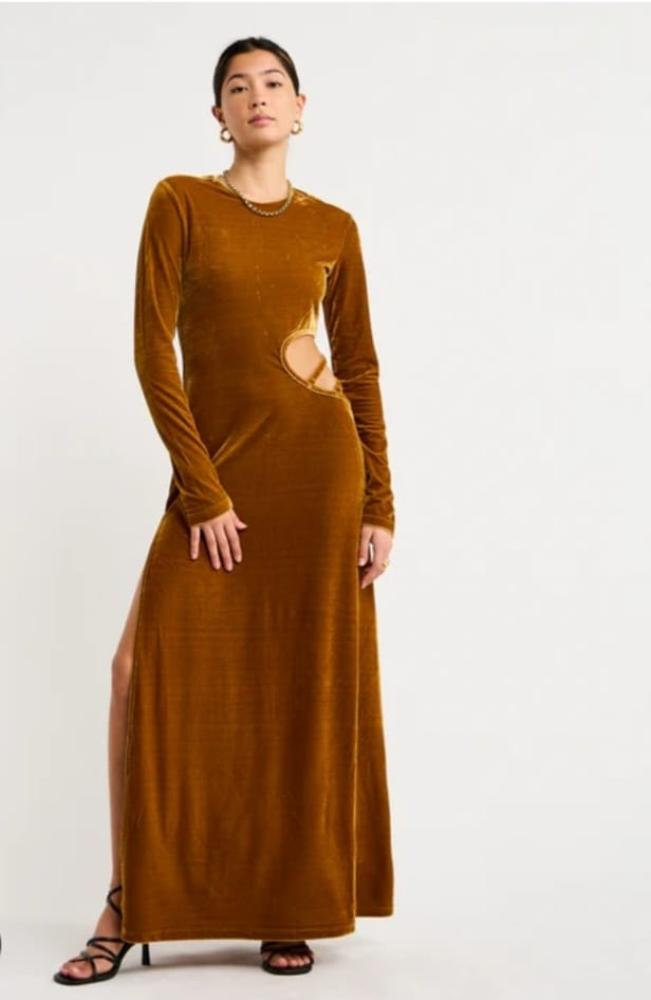فستان مخمل طويل بفتحة جانبية عصرية 01