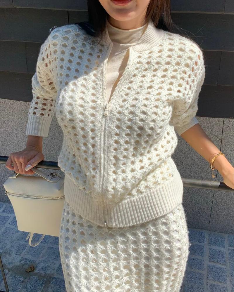 طقم كروشيه نسائي أبيض قطعتين راقي